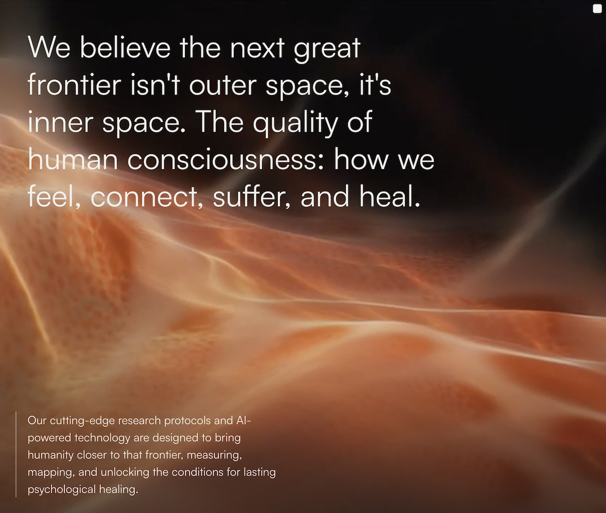 We track real-time brain activity and neurological change across therapeutic sessions, building longitudinal datasets that reveal how consciousness reorganizes itself through healing, and what that means for mental health treatment at scale.